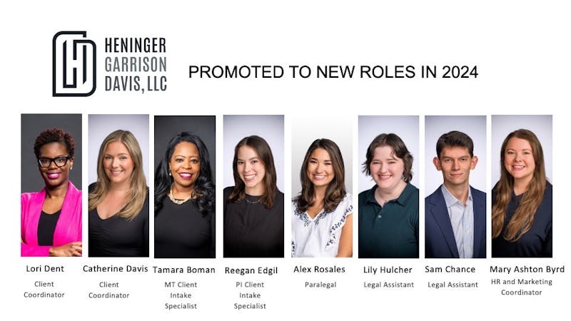 Heninger Garrison Davis (HGD) Law Firm is excited to announce the promotion of several outstanding team members to new roles within the firm in 2024. These advancements highlight HGD’s dedication to fostering talent, enhancing client service, and strengthening internal operations.