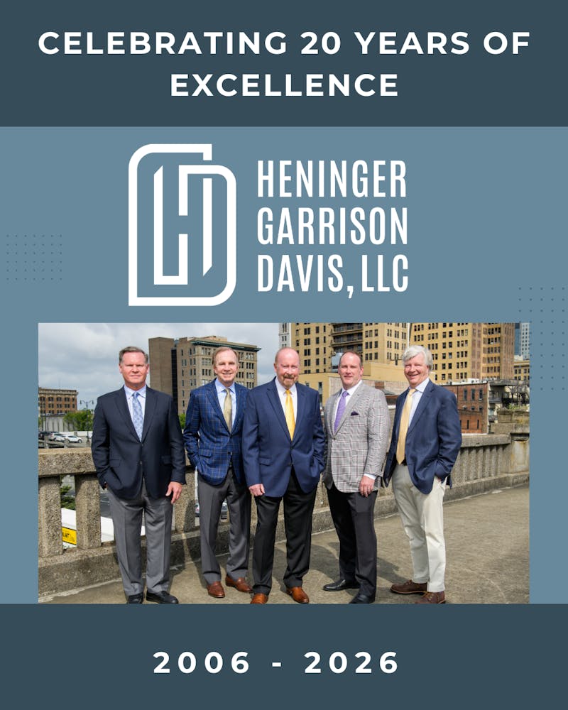 HGD was founded in 2006 by Erik Heninger, Steve Heninger, William Lewis “Lew” Garrison, and Tim Davis, attorneys united by a shared conviction: personal injury law could—and should—be practiced differently. One year later, Lee Gresham joined the firm, strengthening both its leadership and its commitment to excellence. Together, they built HGD on a foundation of integrity, respect, and unwavering dedication to clients.
